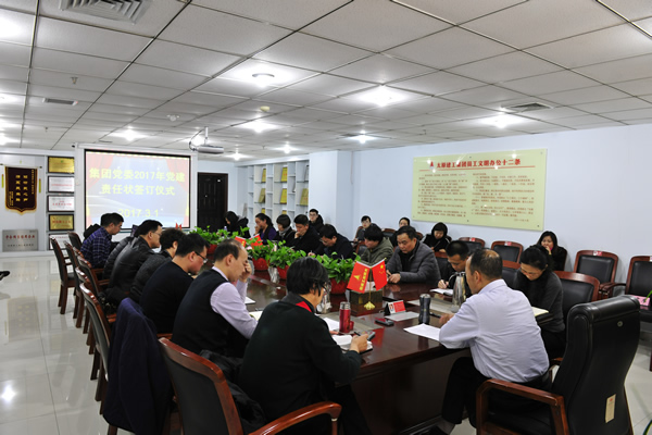 3月1日,集團(tuán)黨委在會(huì)議室舉行了2017年度黨建目標(biāo)責(zé)任狀簽訂儀式。集團(tuán)黨委班子成員、各直屬黨支部書記及黨務(wù)工作者參加了會(huì)議。